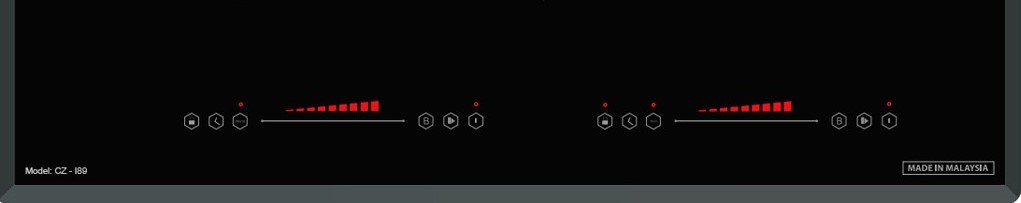 Bảng điều khiển cảm ứng của bếp từ chính hãng Canzy này dạng Slider Control gồm 9 mức công suất khác nhau cho từng vùng nấu đem lại nhiều tiện ích cho người dùng, nhất là khi sử dụng 2 vùng nấu cùng một lúc. Thao tác cực kỳ đơn giản, chỉ cần chạm nhẹ và trượt bằng một ngón tay, điều khiển nhanh nhạy cả khi tay ướt. Mọi chế độ nấu được thể hiện qua màn hình bằng đèn Led màu đỏ để người dùng dễ quan sát và chủ động điều chỉnh mức công suất phù hợp với từng món ăn. Đây là dạng điều khiển thân thiện, dễ sử dụng với cả những người lớn tuổi.