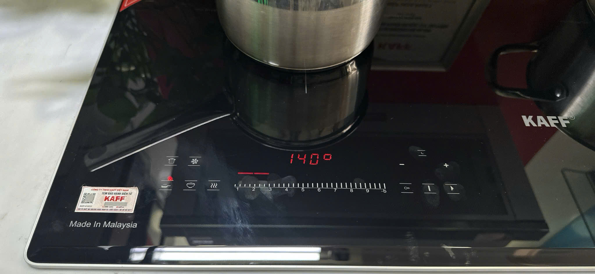 Bếp từ chính hãng KAFF KF-I891 Luxury được trang bị hai vùng nấu công suất cao, với tổng công suất lên đến 3600W, đảm bảo nấu chín thực phẩm nhanh chóng và đồng đều. Mỗi vùng nấu có thể điều chỉnh nhiều mức công suất khác nhau, giúp người dùng linh hoạt kiểm soát nhiệt độ theo từng món ăn từ xào, rán đến hầm, nấu soup. Ngoài ra, bếp còn tích hợp cảm biến nhiệt độ hiện đại, tự động điều chỉnh công suất phù hợp với từng loại nồi, giúp bảo vệ thiết bị và kéo dài tuổi thọ bếp.