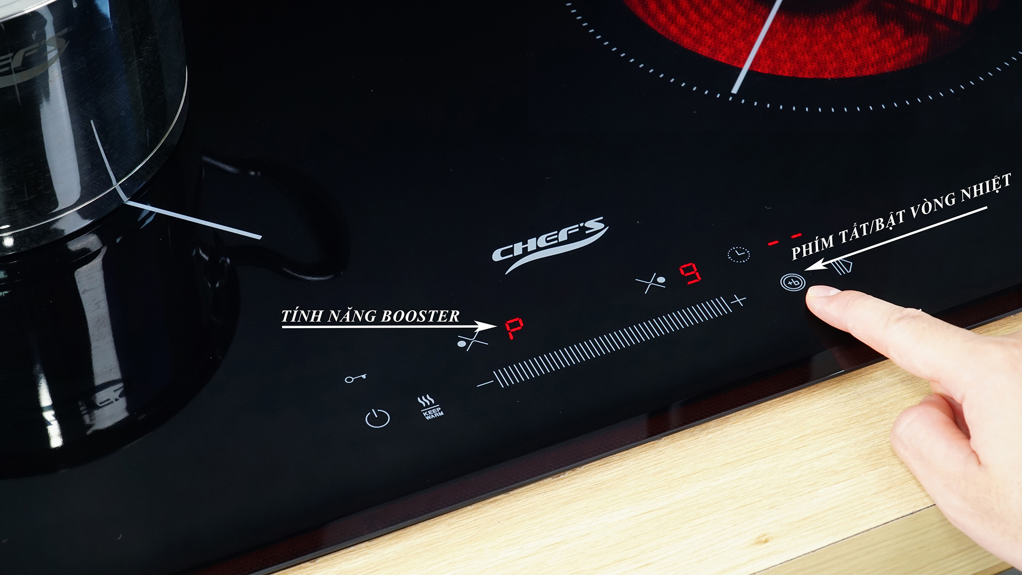 hợp 2 vòng ra nhiệt hiệu quả giúp bếp điện từ Chefs này tiện lợi sử dụng khi có thể tùy chỉnh để phù hợp với