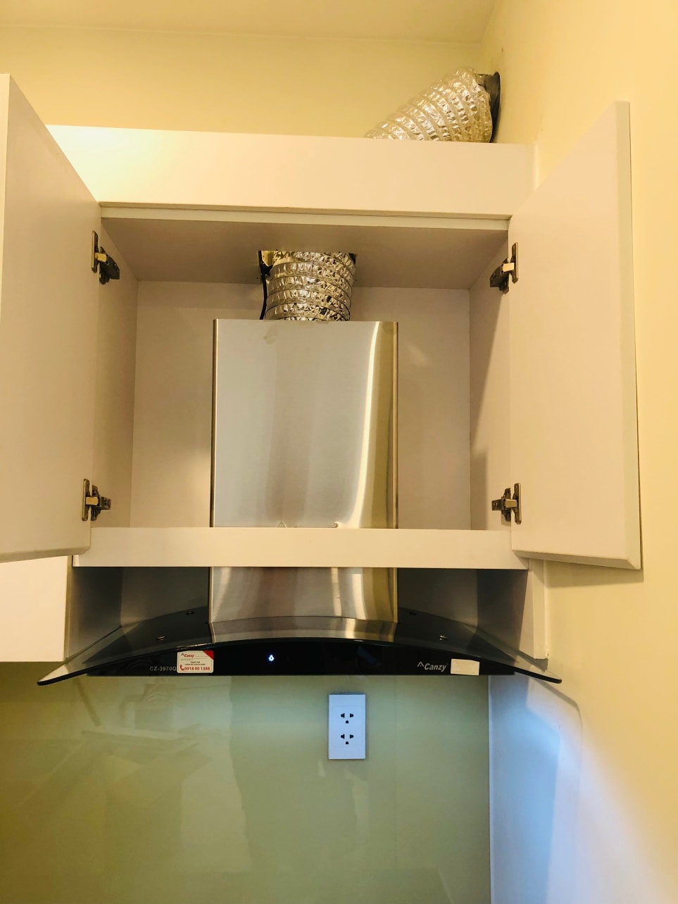 lắp đồng bộ với tủ và bếp. Loại máy hút mùi âm tủ này mang tính thẩm mỹ cao, có