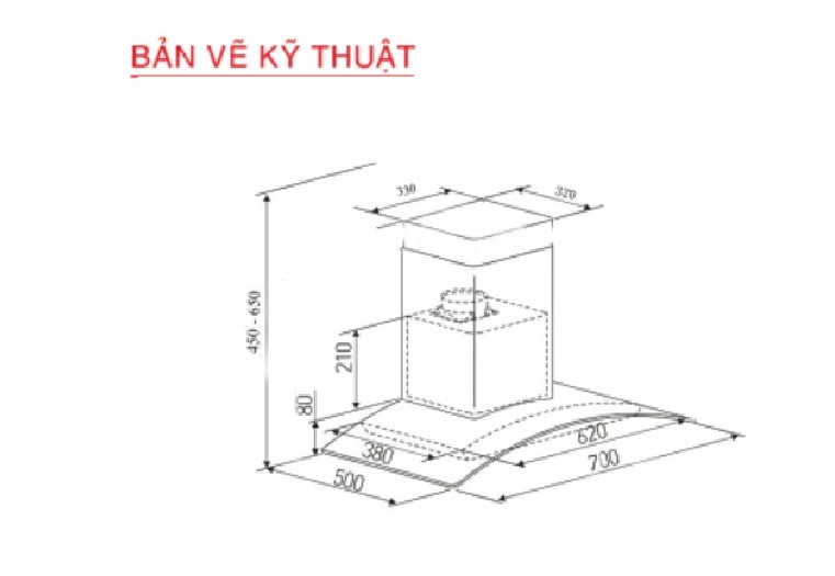 - Kiểu dáng: Máy thuộc dòng máy hút mùi kính cong gắn tường với thân máy làm bằng thép không gỉ (Inox 201) bền bỉ.
