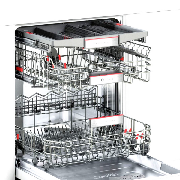 Máy sử dụng hệ thống giàn rửa VarioFlex linh hoạt, cho phép sắp xếp xoong nồi, bát đĩa dễ dàng. Khay trên có thể điều chỉnh độ cao theo 3 mức nhờ hệ thống RackMatic, giúp tối ưu không gian chứa khi cần rửa nồi lớn hoặc vật dụng cao. Máy còn được trang bị khay thứ 3 VarioDrawer chuyên dụng cho dao, thìa, đũa, giúp tăng diện tích sử dụng và rửa sạch hiệu quả hơn. Động cơ EcoSilence Drive không chổi than giúp máy hoạt động êm ái, bền bỉ và tiết kiệm điện. Công nghệ ActiveWater tối ưu áp lực và lượng nước sử dụng, kết hợp cảm biến độ bẩn nước và cảm biến tải để tự động điều chỉnh chu trình rửa phù hợp.