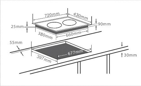 – Kích thước mặt bếp : (720 x 430 x 90) mm