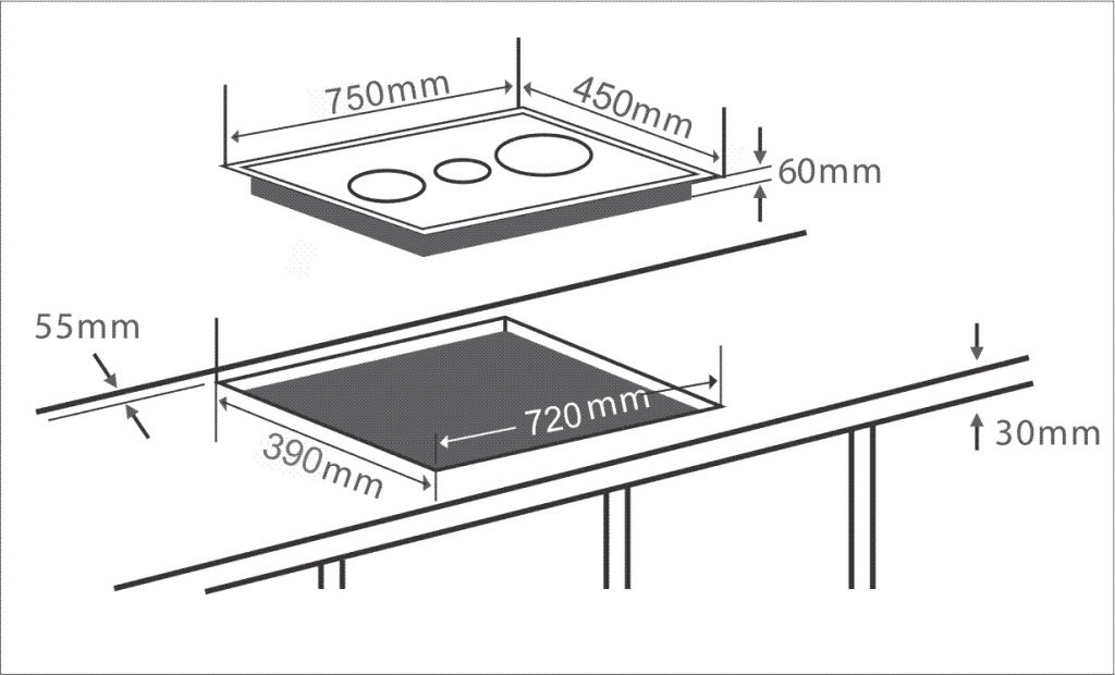 Đây là mặt kính chuyên dụng dành cho bếp điện từ, là một loại kính có chất lượng cao, rất cứng, bền và có nhiều đặc điểm nổi trội như: khả năng chịu nhiệt, khả năng chống trầy xước và chống va đập .... Mặt kính gồm các thấu kính hội tụ, truyền nhiệt từ bếp lên đáy nồi theo phương thẳng đứng, không thất thoát nhiệt ra môi trường. Mặt kính màu xám liền nguyên khối, an toàn, thẩm mỹ và tiện trong việc vệ sinh, lau chùi.