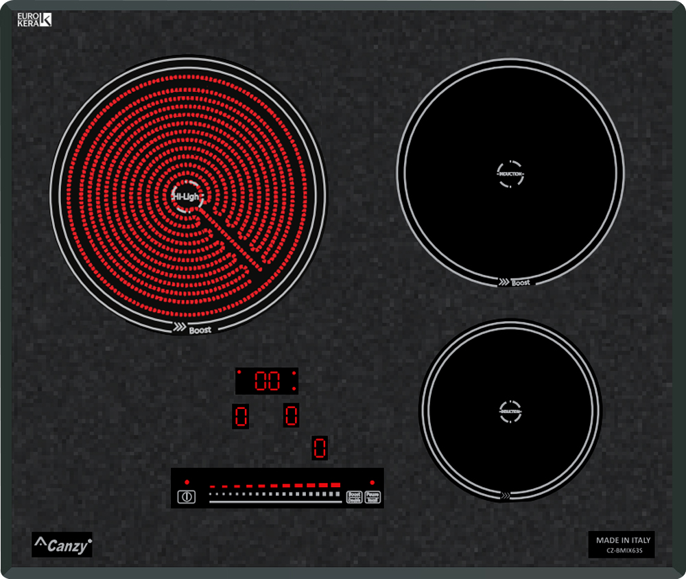 - - Bên từ bếp có thể Booster độc lập+ bên hồng ngoại được chia ra 2 vòng hồng ngoại không bị chia sẻ công suất, thuận tiện khi sử dụng.