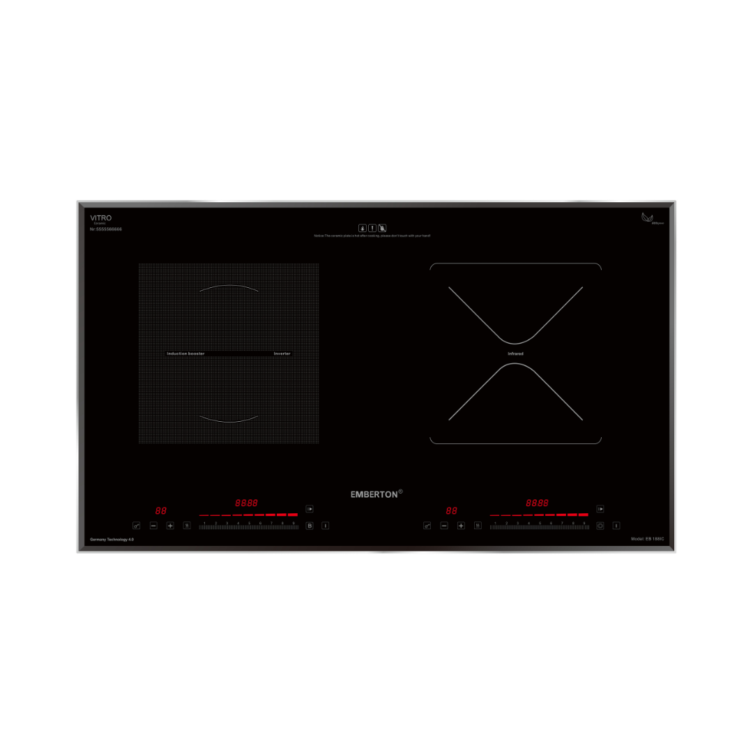 Bếp từ Emberton EB - 188IC được tích hợp chức năng tự nhận diện vùng nấu, khi ta đặt nồi lên 1 trong 2 vùng nấu sau đó ấn nút khởi động bếp sau thời gian 1-2 giây bếp sẽ tự động tìm vùng nấu đã có nồi, ta chỉ việc điều chỉnh mức công suất to nhỏ theo ý muốn mà không phải thao tác chọn vùng nấu như bếp thông thường. Công nghệ Inverter được áp dụng trên bếp có khả năng phản ứng thay đổi công suất theo điều khiển ngay tức thì, khi người dùng điều chỉnh tăng giảm nhiệt độ đun nấu, bếp điều chỉnh thay đổi tức thì về mức nhiệt độ mong muốn.