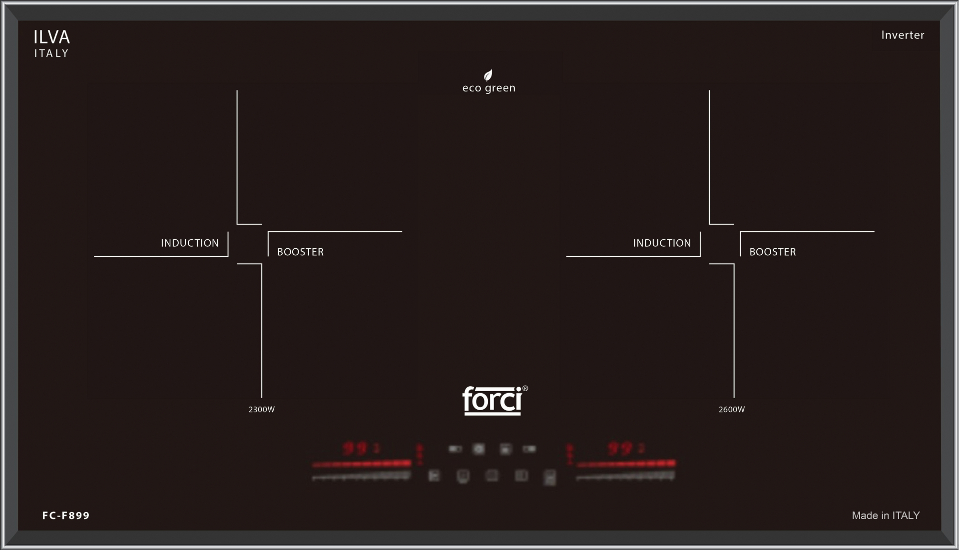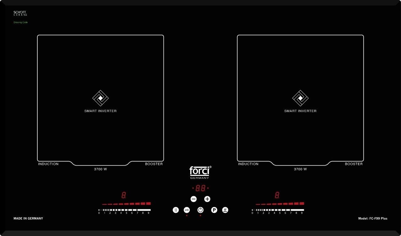 Bếp từ Forci FC - 866 gồm 2 vùng nấu với tổng công suất sinh nhiệt là 7400W. Vùng nấu trái với công suất là 3700W. Vùng nấu phải với công suất là 3700W. Chỉ trong chốc lát nhiệt lượng trên vùng nấu từ tăng lên công suất tương đương với mức nhiệt lượng lớn nhất. Do đó, các món ăn được nấu chín nhanh hơn, tiết kiệm thời gian vào bếp cho chị em nội trợ.