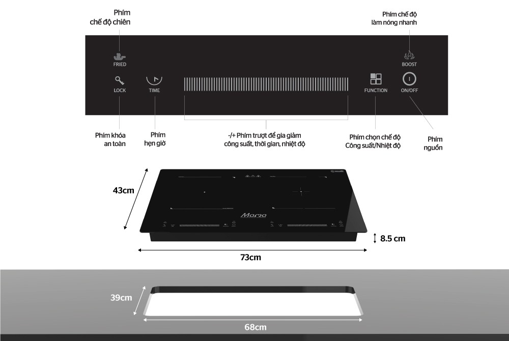 Bếp được trang bị bảng điều khiển cảm ứng hiện đại cùng màn hình LED thông minh hiển thị thời gian và nhiệt độ giúp người sử dụng thao tác nhẹ nhàng, chính xác. Mặt cảm ứng nhanh nhạy, dễ dàng vuốt cảm ứng, tùy chỉnh và điều khiển mang đến sự hiện đại và tiện nghi. Bạn có thể dễ dàng chọn các chế độ nhiệt khác nhau để chế biến những món ăn dinh dưỡng cho cả gia đình mà không đánh mất hương vị thơm ngon tự nhiên do nấu quá nhiệt hay quá lâu.