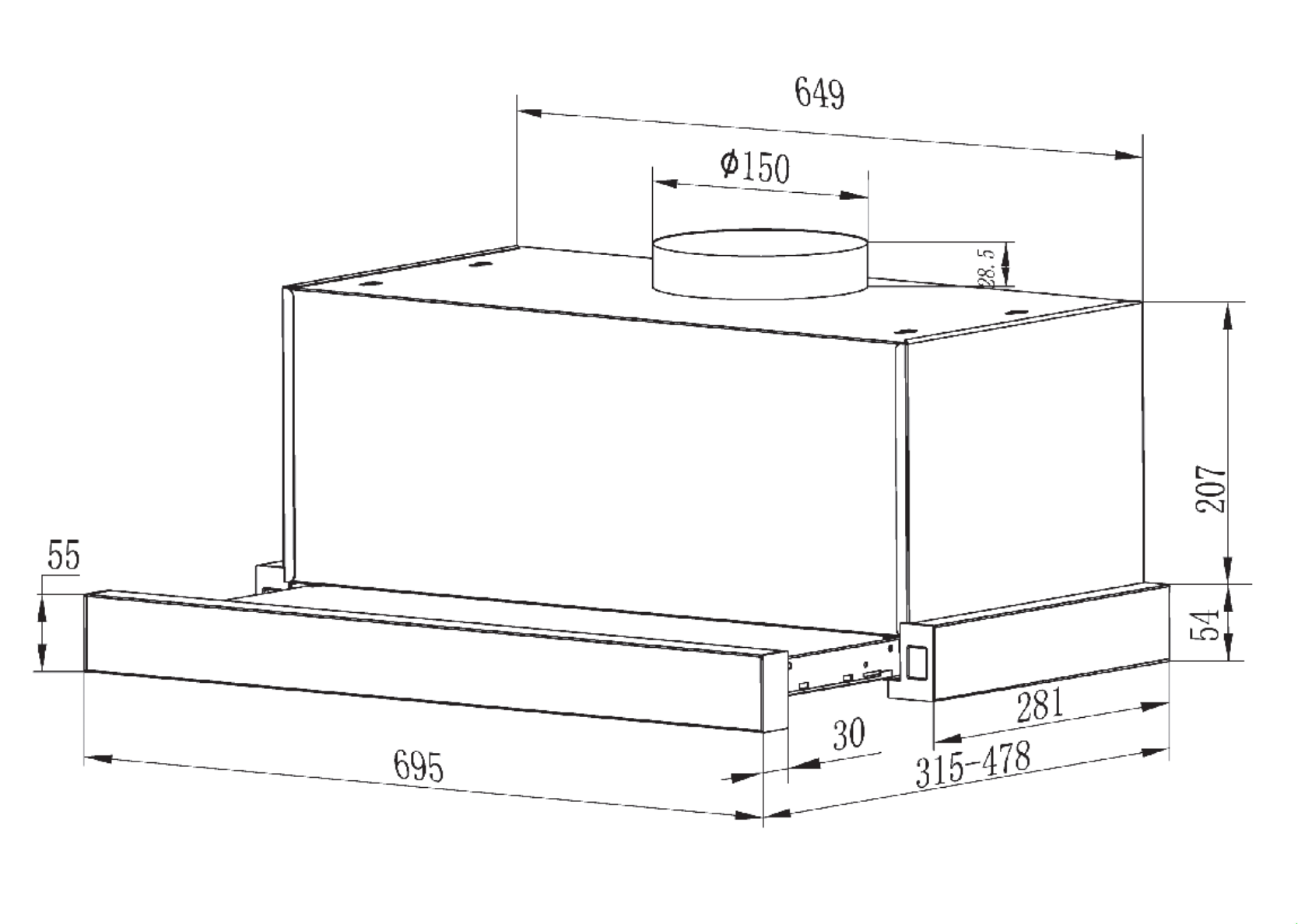 Máy hút mùi EB-1011C có thiết kế hiện đại với chất liệu inox cao cấp, công suất hút mạnh mẽ, và hoạt động êm ái. Sản phẩm này không chỉ giúp loại bỏ mùi hôi và khói nấu nướng một cách hiệu quả mà còn giữ cho không gian bếp của bạn luôn sạch sẽ và thoáng mát.- Động cơ Motor DC